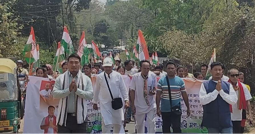 সাব্রুমে মিছিল করে কংগ্রেস প্রার্থীদের মনোনয়ন