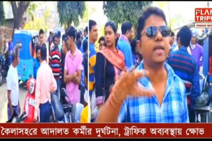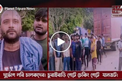 ত্রিপুরার চুরাইবাড়ি গেটে শত শত গাড়ি আটকে তীব্র যানজট। ক্ষুব্ধ লরি চালকদের…